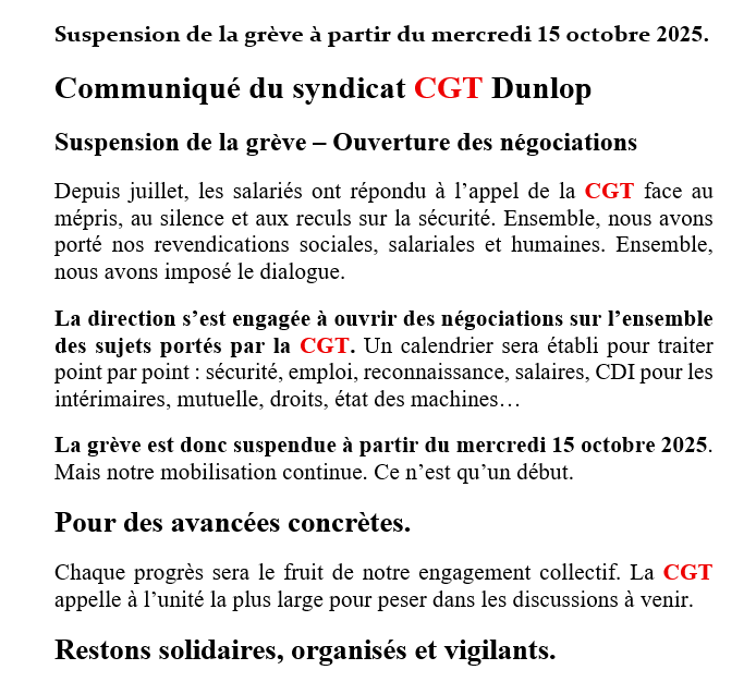 Suspension de grève CGT